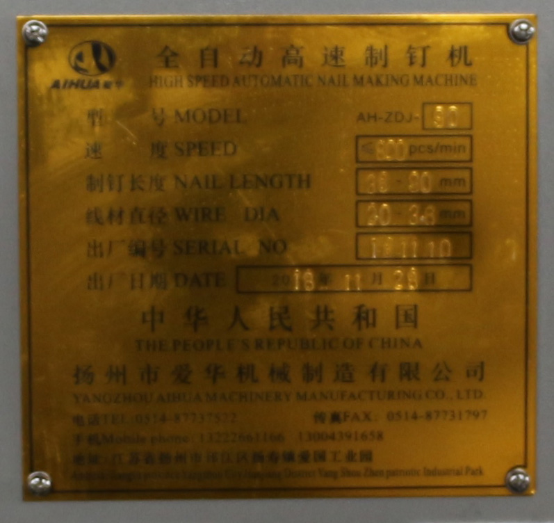 愛華牌AH-ZDJ-90全自動(dòng)高速制釘機(jī)參數(shù)及優(yōu)勢